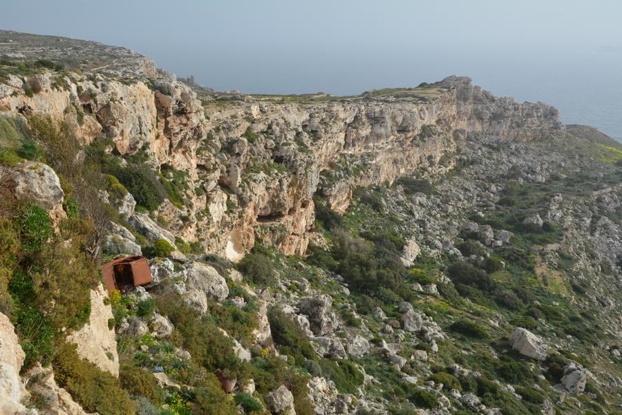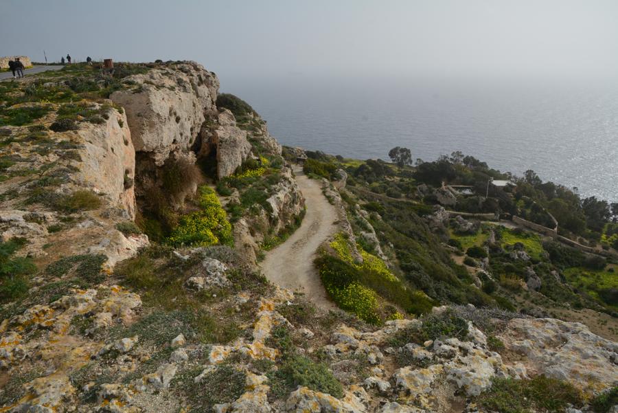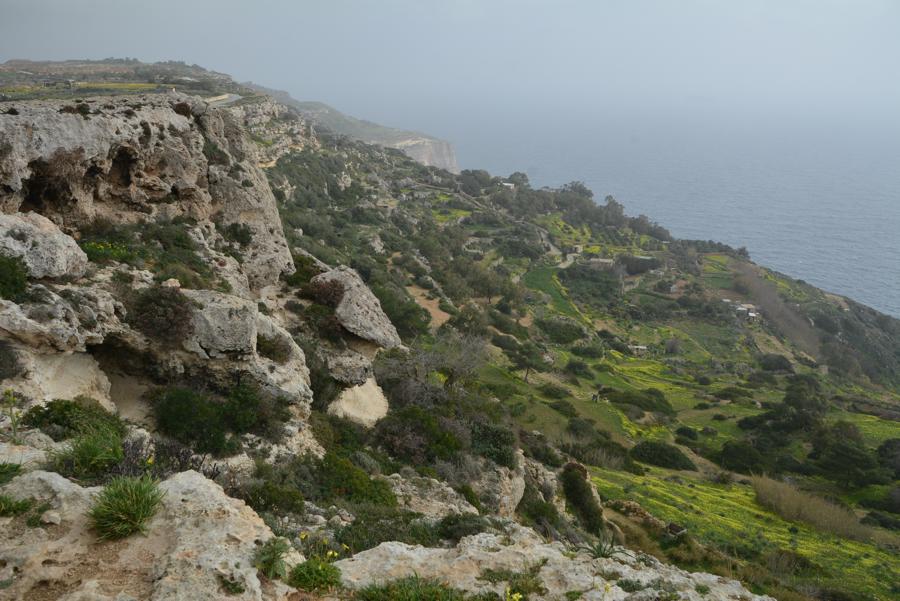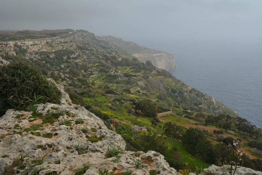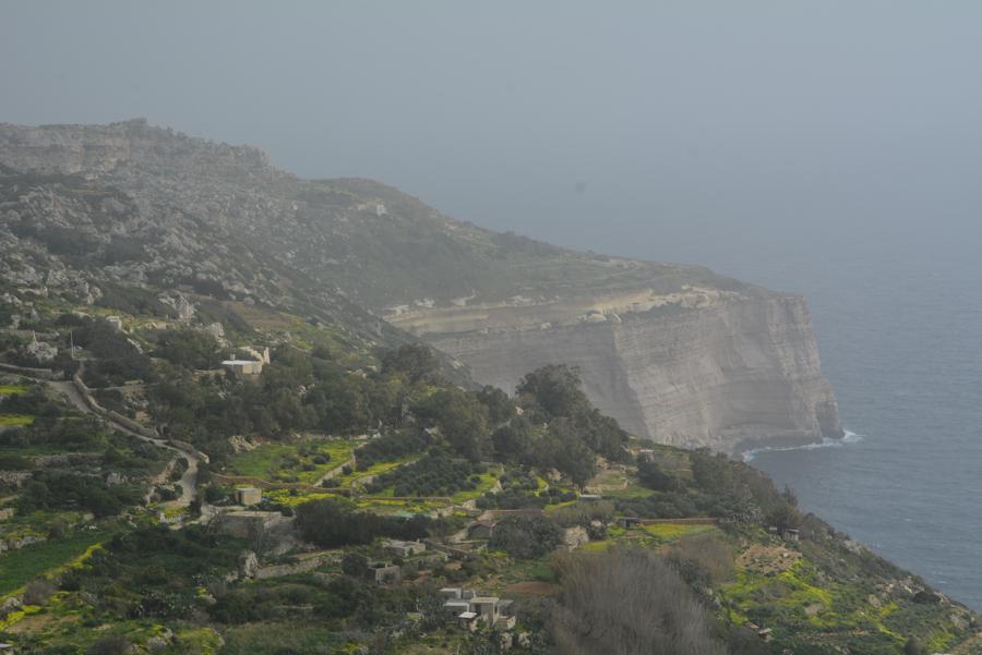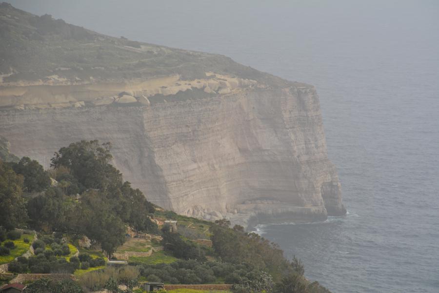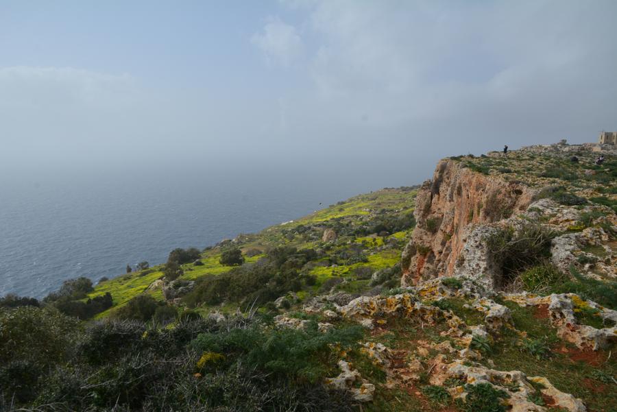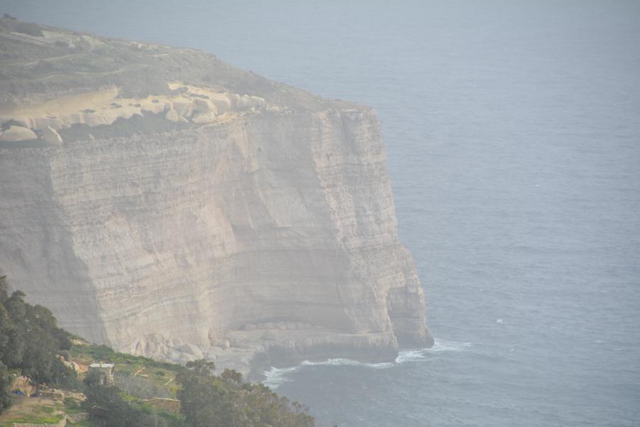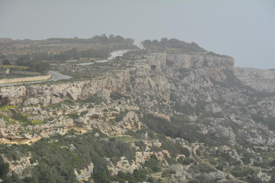 Heute ist es leider etwas neblig. Doch trotz des Nebels sehen wir noch etwas von den Dingli Cliffs, den steilen Felsklippen bei Dingli. Auch an der Radarstation und der alten St. Magdalena-Kirche kommen wir vorbei. Das „The Cliffs“ Restaurant hat heute leider geschlossen. Es ist für seine ökologische und lokale Küche bekannt.