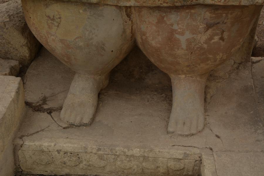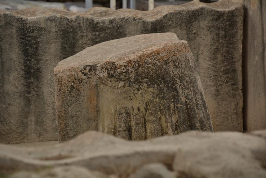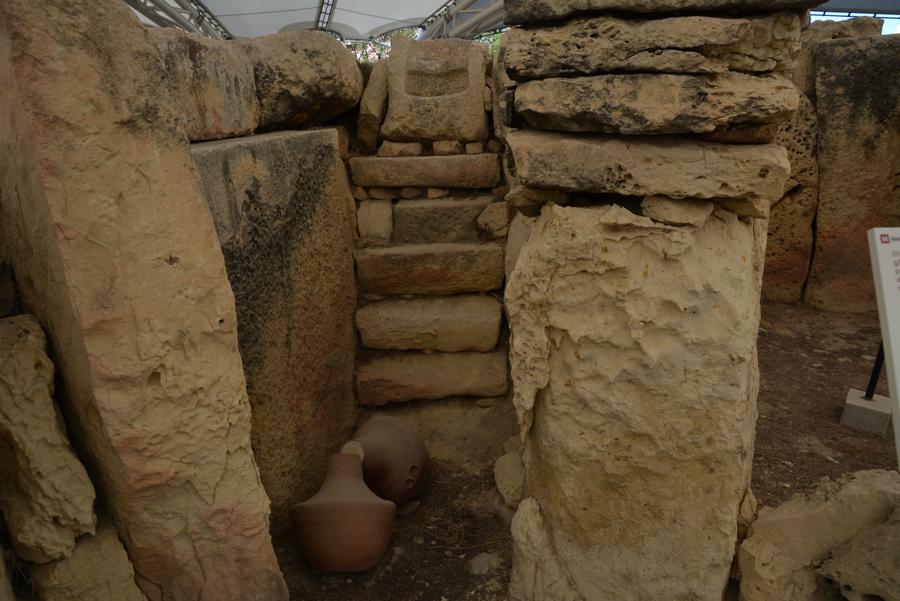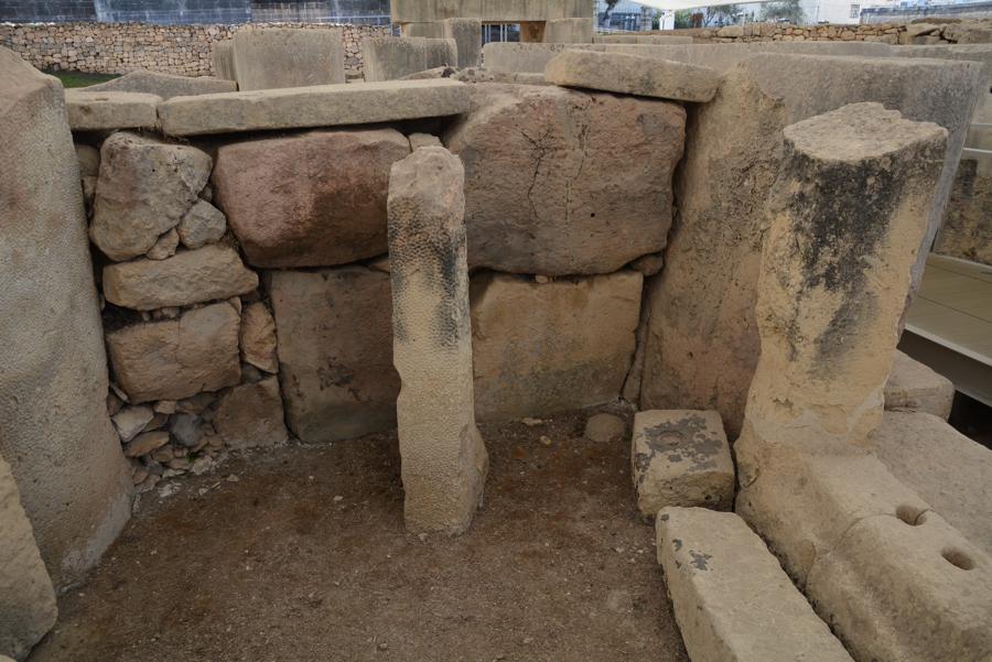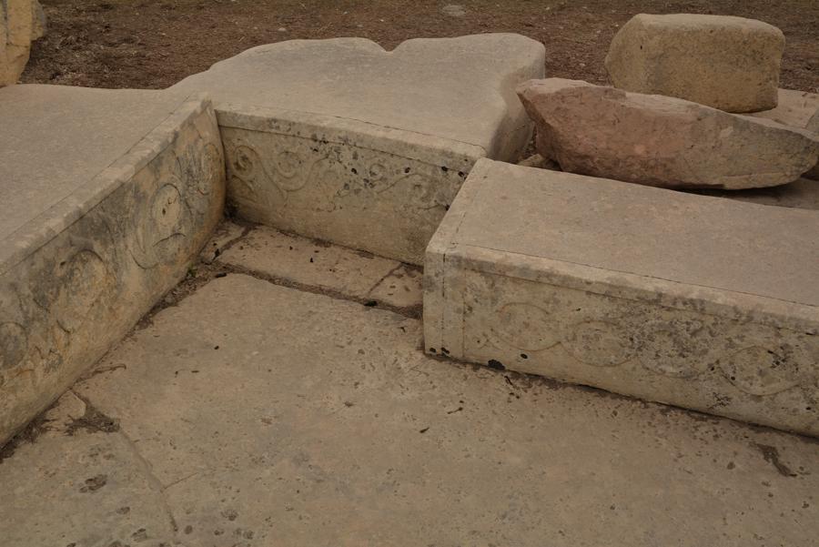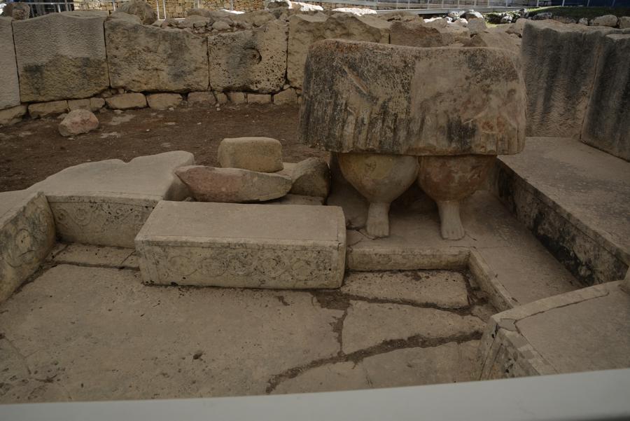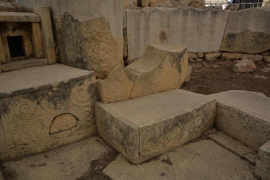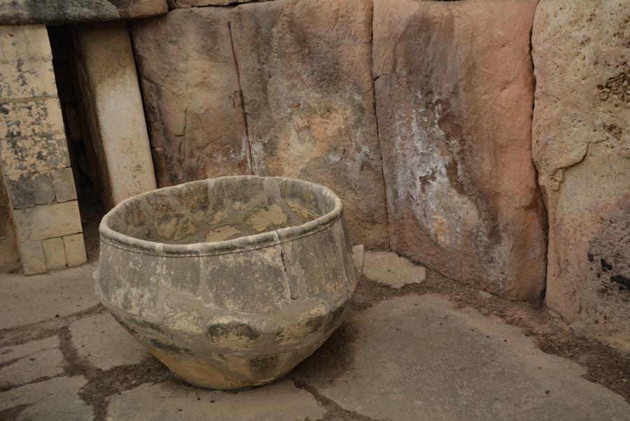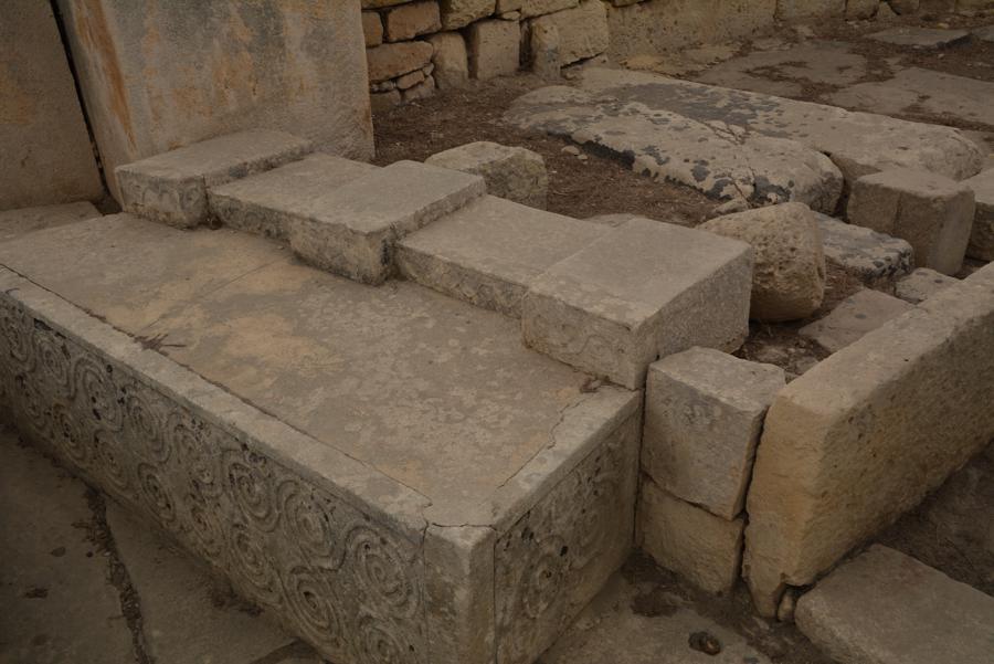 Die Steinzeit-Tempelanlage von Tarxien (3300 bis 2500 v.Chr.) besteht aus vier verschiedenen Tempeln, die innerhalb eines Jahrtausends errichtet wurden. Vom ältesten der Tempel ist nur noch wenig zu sehen, die neueren Tempel sind sehr gut erhalten. Die monumentale Statue, von der nur noch die untere Hälfte erhalten geblieben ist, lässt ahnen, wie hoch die Anlage einst gewesen sein muss.